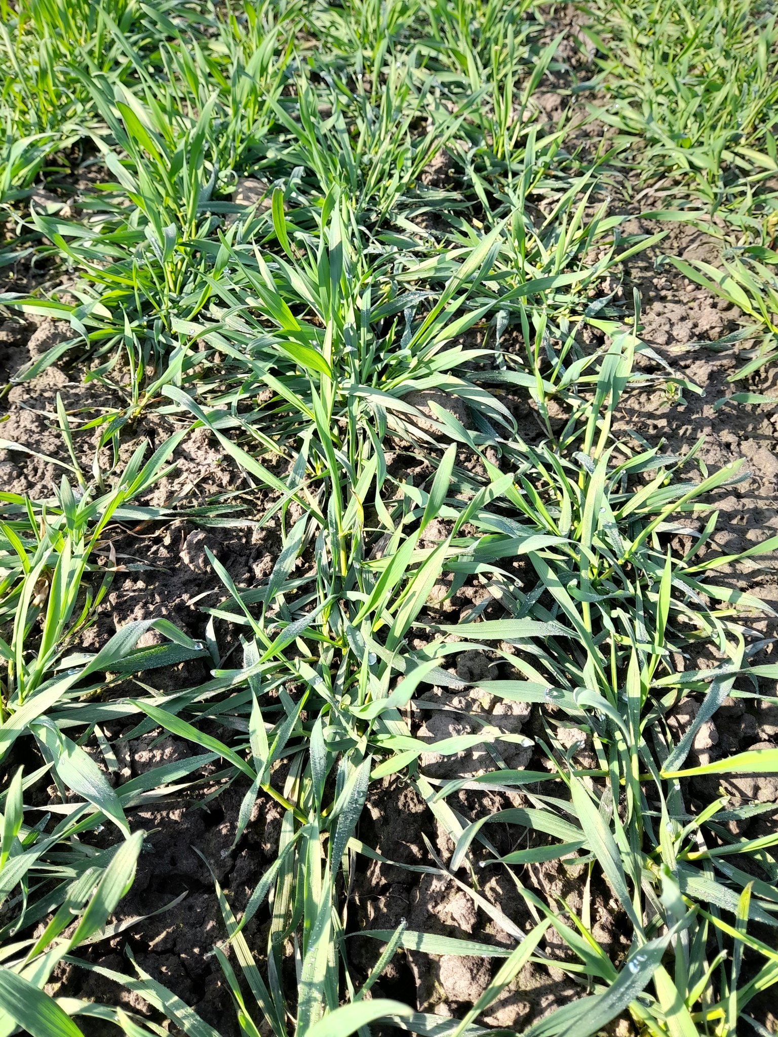 На 24.03 пшениця озима сорту Співанка поліська за сівби 26.09 та 7.10 продовжує весняне кущіння, ІІІ етап органогенезу, ВВСН 22‒25, довжина конуса росту (майбутнього колоса) 0,9‒1,0 мм, сорту РЖТ Белалур за сівби 20.10 ‒ початок кущіння, ІІ етап, ВВСН 21, жито озиме Пам’яті Дерев’янко (сівба 26.09) ‒ перехід від кущіння до виходу в трубку, ІV етап, ВВСН 29, довжина конуса росту 3,0 мм, тритикале озиме Мольфар (сівба 26.09) ‒ кінець кущіння, кінець ІІІ етапу, ВВСН 24‒26, довжина конуса росту 1,6 мм.
