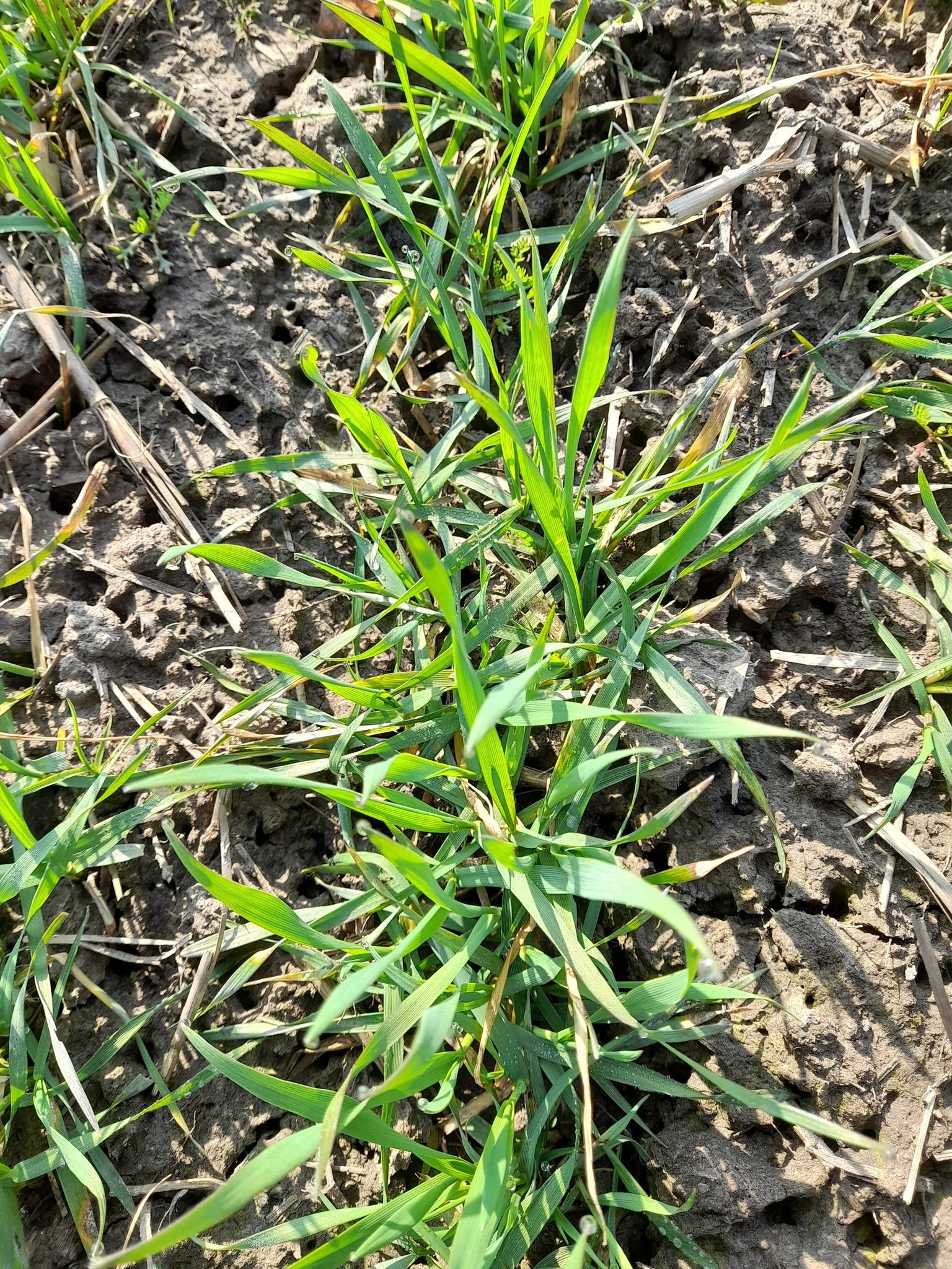 На 24.03 пшениця озима сорту Співанка поліська за сівби 26.09 та 7.10 продовжує весняне кущіння, ІІІ етап органогенезу, ВВСН 22‒25, довжина конуса росту (майбутнього колоса) 0,9‒1,0 мм, сорту РЖТ Белалур за сівби 20.10 ‒ початок кущіння, ІІ етап, ВВСН 21, жито озиме Пам’яті Дерев’янко (сівба 26.09) ‒ перехід від кущіння до виходу в трубку, ІV етап, ВВСН 29, довжина конуса росту 3,0 мм, тритикале озиме Мольфар (сівба 26.09) ‒ кінець кущіння, кінець ІІІ етапу, ВВСН 24‒26, довжина конуса росту 1,6 мм.