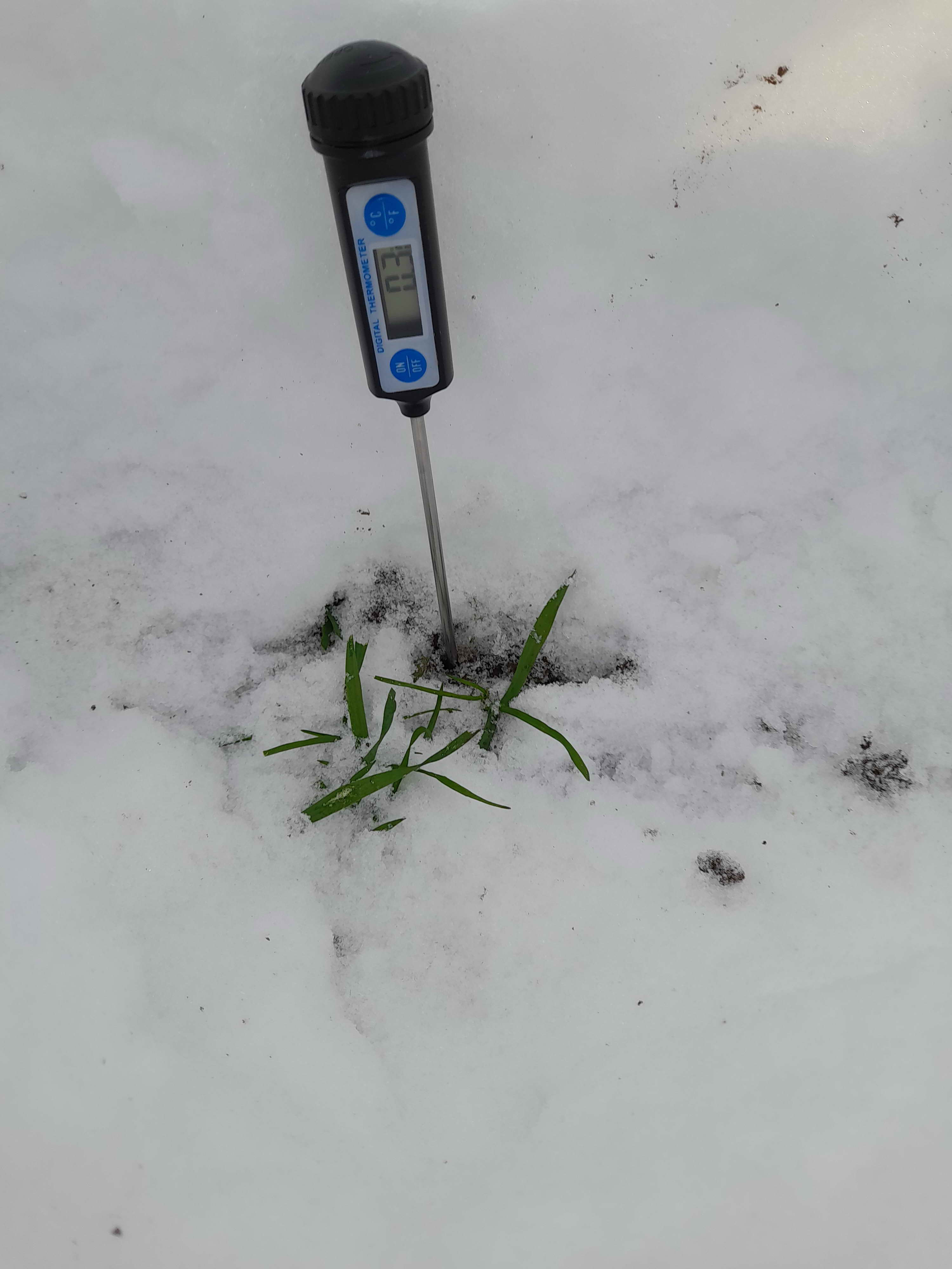 Висота снігового покриву під пшеницею озимою (сівозміна відділу технологій у рослинництві) станом на 5.12 становила 19‒24 см, у наметах до 30‒35 см, відзначаємо наст зверху до 5 см і в шарі, що прилягає до поверхні ґрунту, посівів ‒ до 1,5 см. Під дією тепла глибших горизонтів ґрунту та значній висоті снігу його промерзання, яке спостерігали в попередній період, немає, ґрунт талий. Строкова температура на глибині залягання вузла кущіння ‒ 0,3 °С, мінімальна за цей період ‒ -2,5 °С.